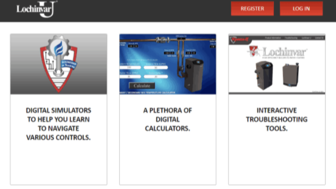 Part of a comprehensive online training resource from Lochinvar University, the Toolbox has tools you need to succeed. There are digital simulators to help you learn to navigate various controls; a plethora of digital calculators related to the hydronic and plumbing markets; and intereactive troubleshooting tools.
